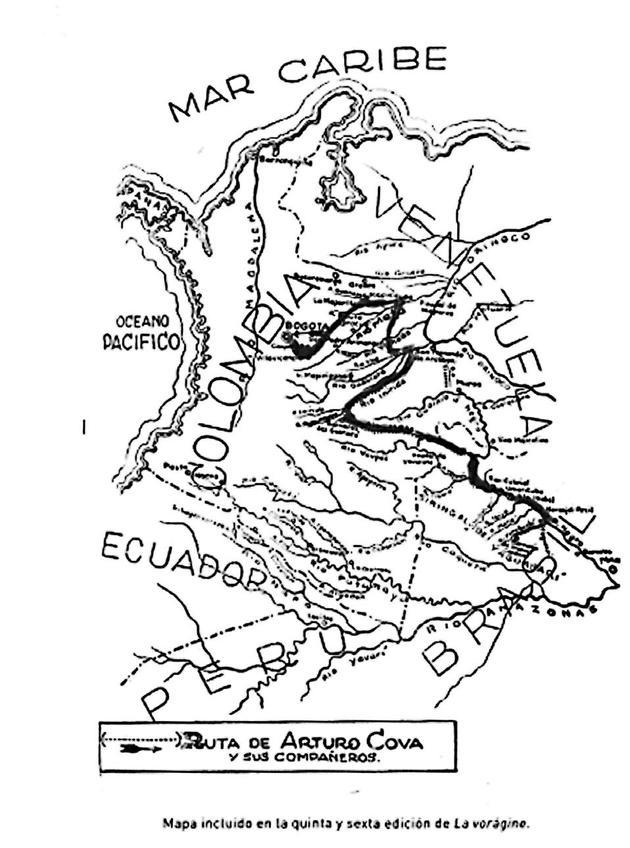 En una agreste carta publicada más tarde en El Tiempo, Rivera declaraba que los asentamientos militares peruanos en el rio Caquetá y Putumayo “eran un hecho innegable, sistemático y además, endémico.”[9] Sin embargo sus propuestas para aminorar la amenaza Peruana no ofrecen ninguna alternativa novedosa, sino que más bien ensayan las técnicas de construcción de carreteras y emigración interna que eran procedimientos comunes en la época. Los accidentes naturales no son vistos como se ven desde la retórica de Bogotá: oportunidades para el desarrollo de la economía nacional. Al contrario, en su prosa pesimista por ejemplo, el rio Putumayo no figura como una ventana de oportunidad económica para el país sino como una fisura y amenaza a la seguridad del país. Cuando Rivera regresa a Bogotá, se anticipan las publicaciones de sus notas y observaciones geográficas, mapas, datos, acotaciones, todo lo anterior con el fin de articular su denuncia ante las autoridades centrales sobre las condiciones del sur del país. Lo que si no se anticipaba, sin embargo, era la publicación de una novela que salía a la venta en 1924 y que describía la sombría aventura de dos jóvenes bogotanos que huyen de la urbe y terminan siendo “devorados por la selva.”